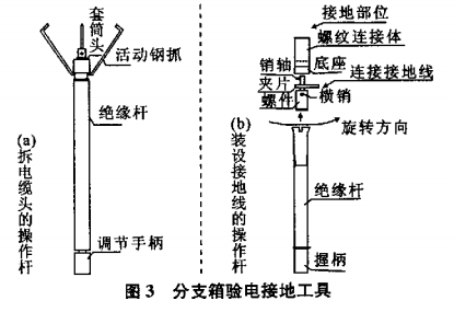 電纜分支箱因受其特有內(nèi)部設(shè)計(jì)結(jié)構(gòu)限制而無(wú)法使用以往變電及線路所用的較成熟的驗(yàn)電,接地工具,尤其是全絕緣密封下的驗(yàn)電工作一直威脅著檢修人員的安全。近年一些事故的原因分析顯示出嚴(yán)格按安全技術(shù)措施順序執(zhí)行的重要性,若按以前的方法操作,則萬(wàn)一停錯(cuò)線路、突然來(lái)電,設(shè)備帶電顯示故障或基礎(chǔ)資料錯(cuò)誤等,后果將極為嚴(yán)重。為此,本公司與無(wú)錫市八士安全用具公司合作開(kāi)發(fā)研制了更安全可靠的電纜分支箱驗(yàn)電接地工具。